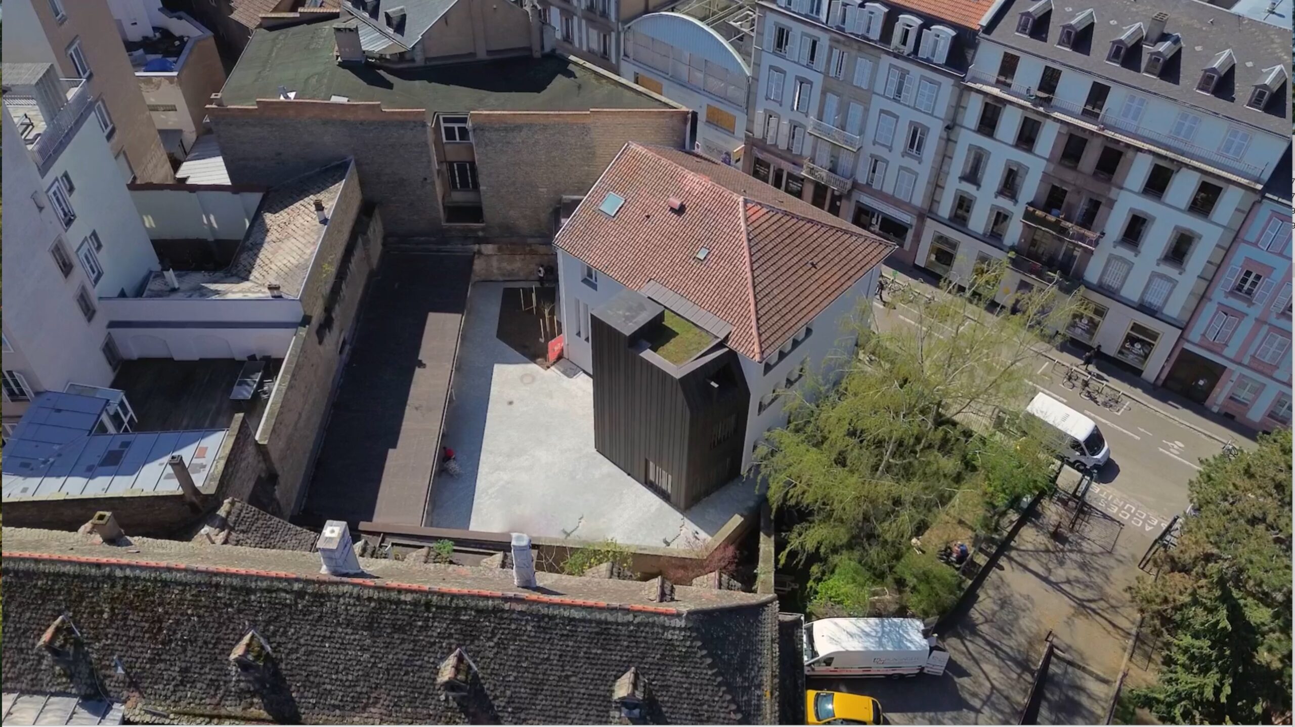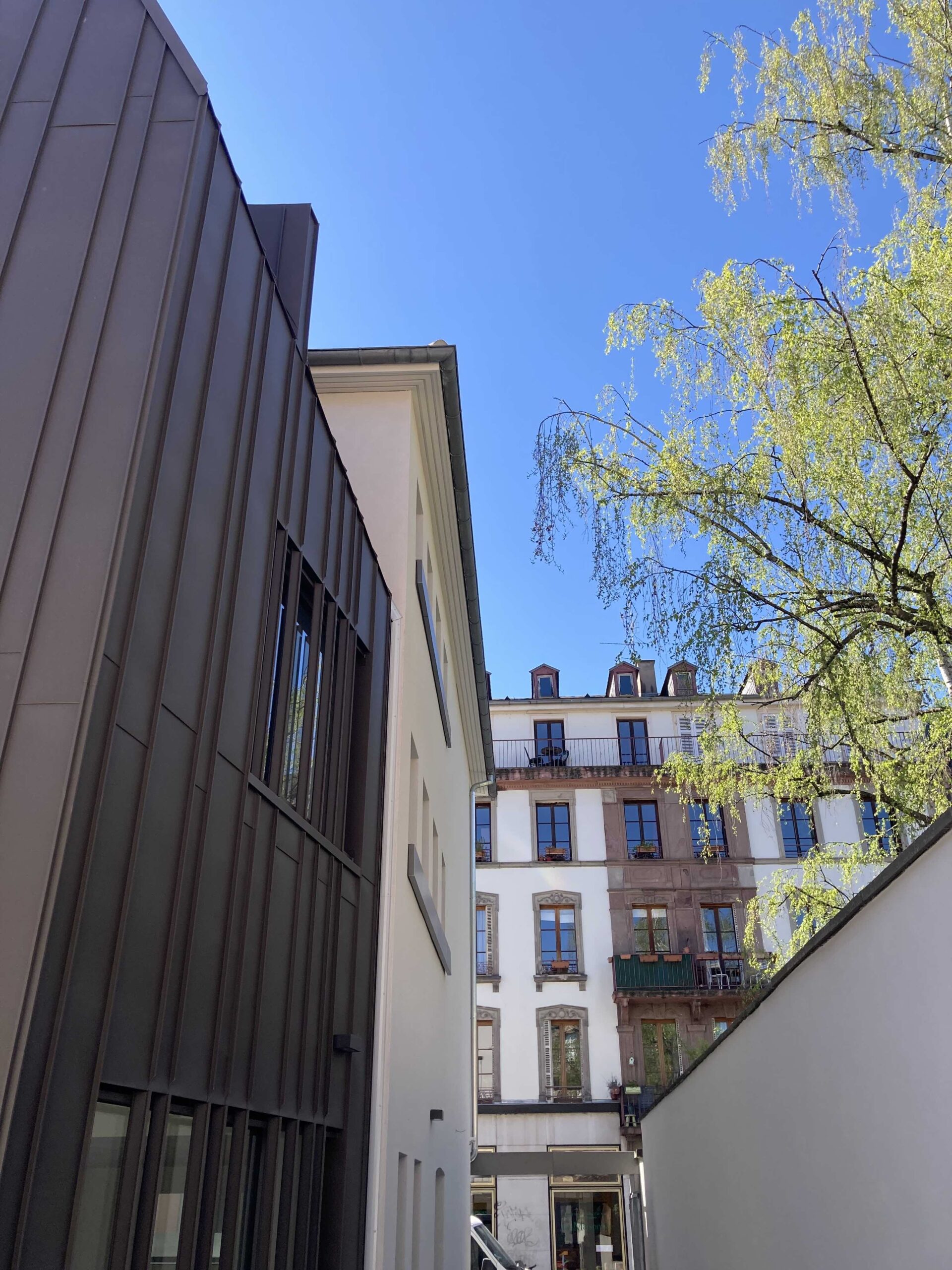 Restructuration et extension d’une maison de ville sise 13 quai Saint-Jean à Strasbourg pour créer la maison des Sœurs de la Fraternité de Jérusalem, afin d'optimiser et d'harmoniser l'articulation auparavant malaisée entre la Vie, l'Œuvre et la Mission de cette Communauté  de Moniales, au plus près de l'Église Saint-Jean où ont lieu les Offices ainsi que près des Frères de la Fraternité de Jérusalem, qui constituent une communauté distincte mais intrinsèque aux Fraternités Monastiques de Jérusalem de Strasbourg et d'ailleurs.
